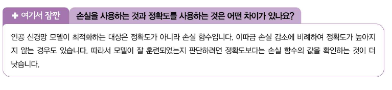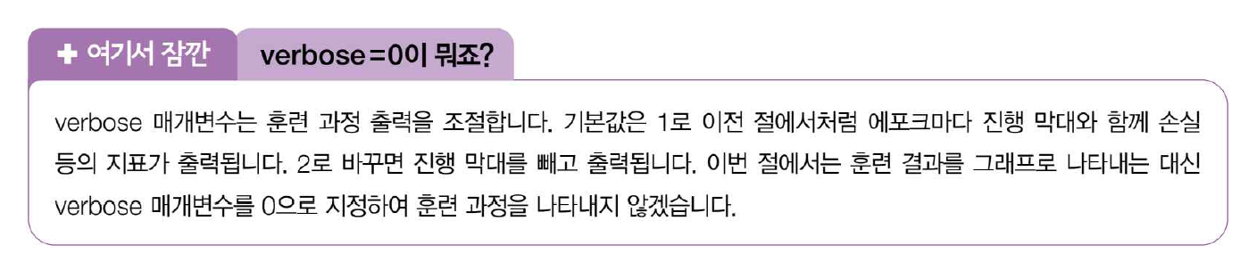 4장에서 확률적 경사 하강법을 사용했을 때 과대/과소적합과 에포크 사이의 관계를 알아봤다. 인공 신경망은 모두 일종의 경사 하강법을 사용하기 때문에 동일한 개념이 여기에도 적용된다.