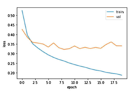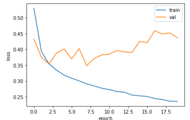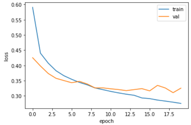 과대적합이 확실히 줄었다. 열 번째 에포크 정도에서 검증 손실의 감소가 멈추지만 크게 상승하지 않고 어느정도 유지되고 있다. 이 모델은 20번의 에포크 동안 훈련했기 때문에 결국 다소 과대적합 되어 있다. 그렇다면 과대적합 되지 않은 모델을 얻기 위해 에포크 횟수를 10으로 하고 다시 훈련해야 한다.