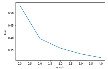 파이썬 리스트의 인덱스는 0부터 시작하므로 5개의 에포크가 0에서부터 4까지 x축에 표현된다. y축은 계산된 손실 값이다.