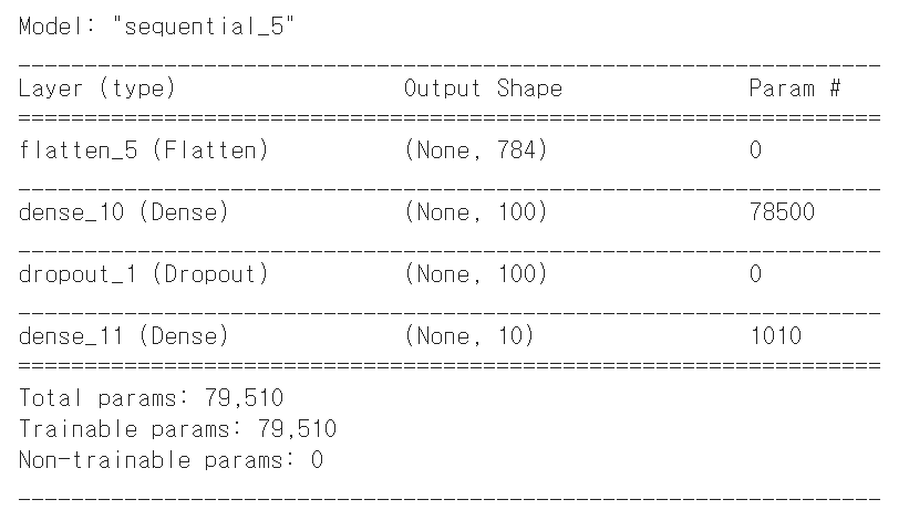 드롭아웃은 층처럼 사용되지만 훈련되는 모델 파라미터는 없다.