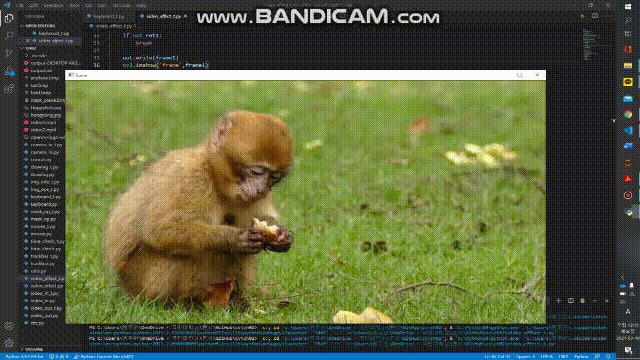 구현할 기능 파란색 폴더 영역 추출하기 파랑 영역에 다른 배경 영상을 합성하여 저장하기 스페이스바를 이용하여 크로마 키 합성 동작 제어하기 import cv2 import sys import numpy as np cap1=cv2.VideoCapture(0) if not cap1.isOpened(): print('video open failed!') sys.exit() cap2=cv2.VideoCapture('mountain.mp4') w=round(cap1.get(cv2.CAP_PROP_FRAME_WIDTH)) h=round(cap1.get(cv2.CAP_PROP_FRAME_HEIGHT)) frame_cnt1=round(cap1.get(cv2.CAP_PROP_FRAME_COUNT)) frame_cnt2=..